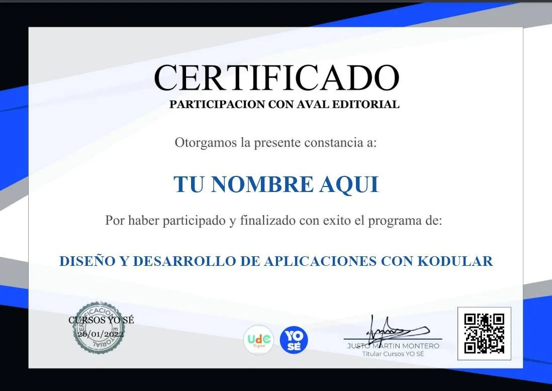 ✅ Aprenderás el uso de la plataforma Kodular para crear aplicaciones móviles personalizadas.