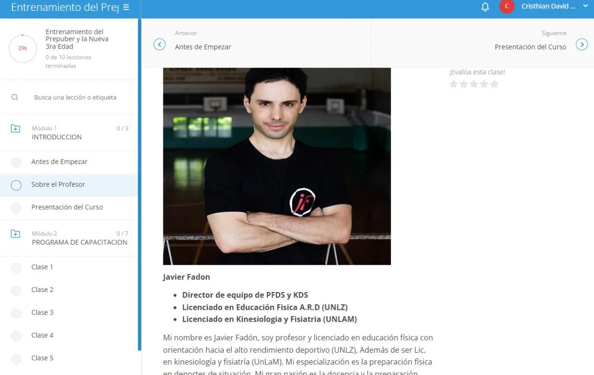 “Javier Fadon”: Mi especialización es la preparación física en deportes de situación. Mi gran pasión es la docencia y la preparación física deportiva, mi sueño es llegar a representar a mi país en un juego olímpico dentro de un equipo de trabajo interdisciplinario, como P.F o Kinesiólogo deportivo.