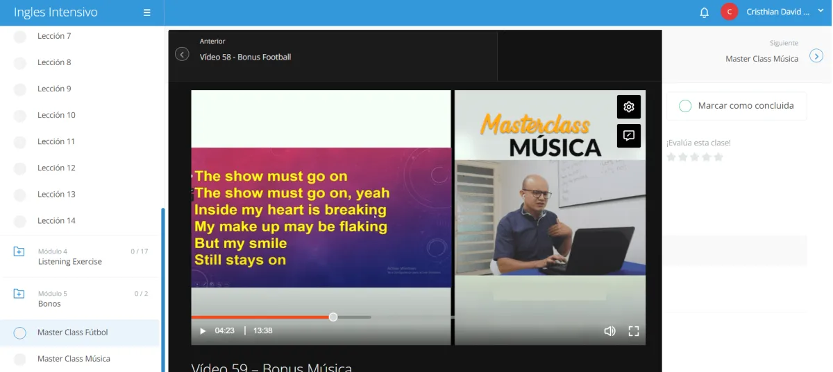 Master class: Práctica de vocabulario con música.