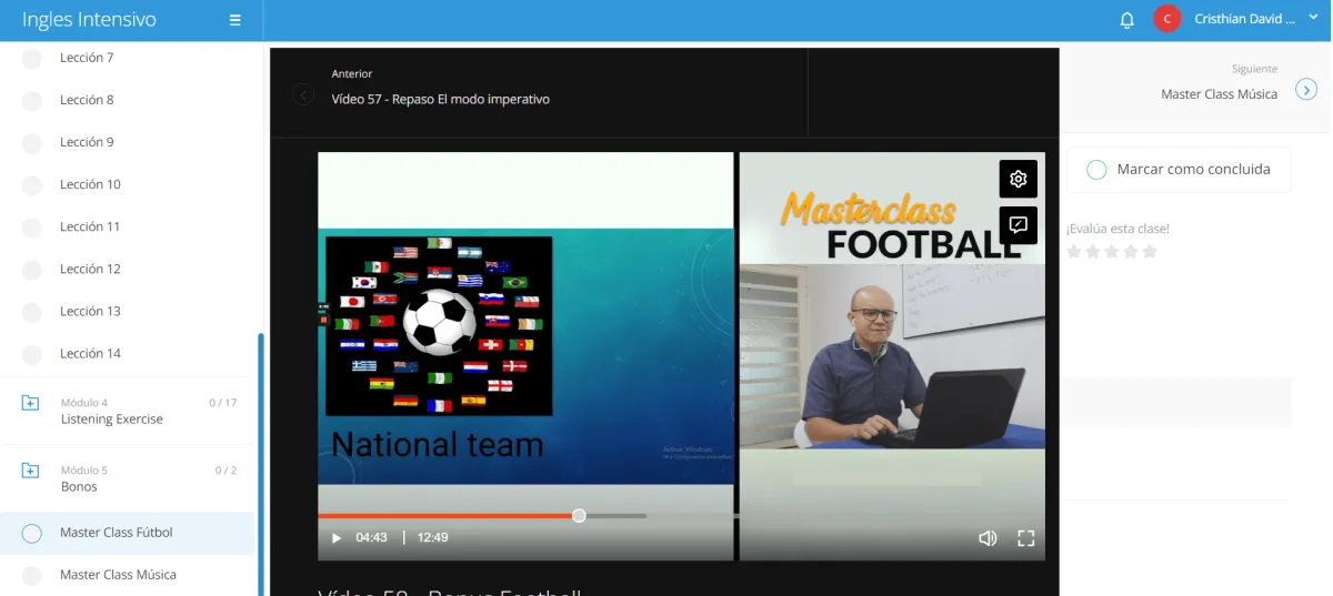 Master class: Práctica de vocabulario con el Futbol.